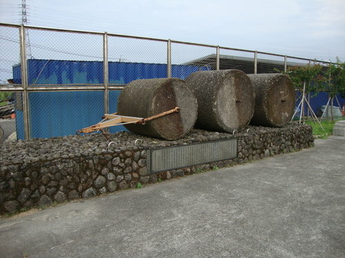 三具石造滾輪,由法鼓山文教基金會設立一座基台展示並提供導覽說明。